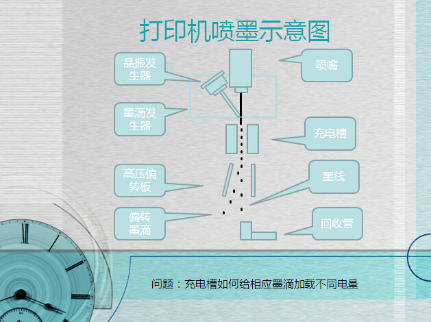 墨滴:經過充電槽電極化,每個墨滴攜帶不同電量的電子(微控制器決定每個墨滴所帶電量的大?。?/p>