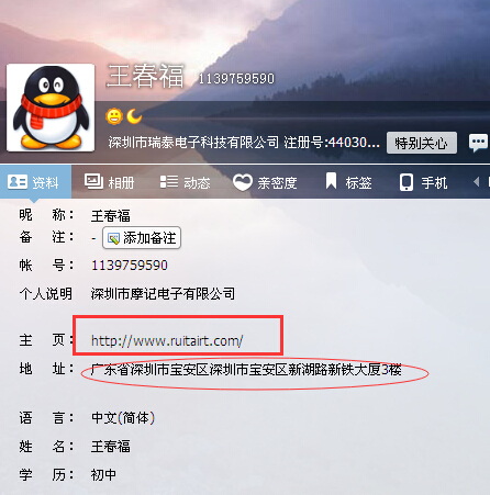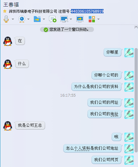 下午,我正在給客戶做報價單,聽到隔壁同事旺旺有客戶來訪店鋪的信息,瞟了一眼,是通過公司信息列表查找的,起先也覺得奇怪,但后面想想也覺得正常,可能是客戶想了解我們公司信息而已了。過了不久,有人加了我的業務QQ,我也就通過了,但是看到對方的資料讓我驚了一下,點開詳細資料查看發現就是我們的公司信息,完全紋絲不動,只是有個地方還是其他公司的名字。這不禁讓我想起了10月份我們也遇到過同樣的騙局,于是我怕上次的事情又重蹈覆轍,馬上就到空間發布了一條信息,讓大家轉款別上當受騙,當時還覺得可恨,想要通知每一個客戶,只可惜QQ沒有群發功能。舉報了騙子QQ之后,發現騙子QQ離線狀態了,后來不經意間看到公司窗外的云朵非常的漂亮,忍不住拿起手機拍的時候,發現工作QQ還掛在手機上,但是騙子QQ的昵稱又換了,拍完照片之后,回到電腦,發現騙子的信息又換了另外一家公司的信息。