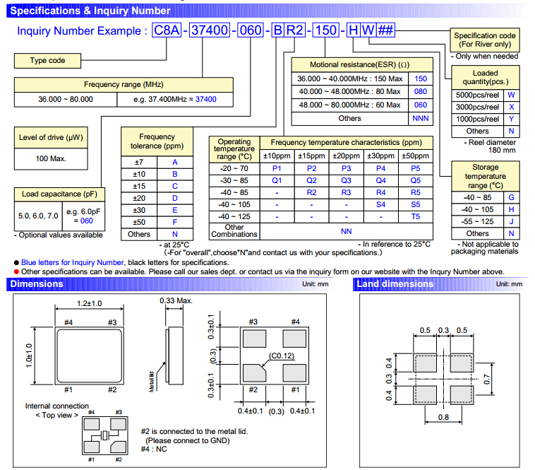 電子束封裝的陶瓷封裝和金屬蓋。較低的頻率公差(±7ppm)。