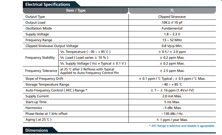 | 7L-26.000MBG-T | OSC TCXO 26.000MHZ | 3.3V | 2.5x2.0x0.8mm |