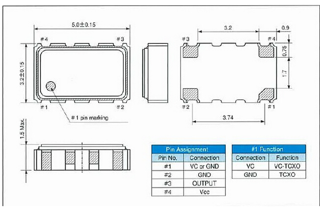 產品特征:5032尺寸,小型,薄型,較輕的SMD水晶振動子.高耐熱性,高精度,高信賴性.