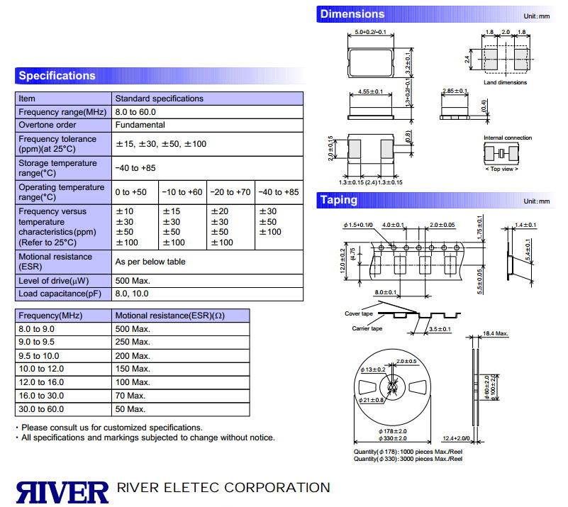 RIVER ELETEC是以生產(chǎn)晶體、晶振為主的電子元器件廠家。尤其在SMD型(表貼型)小型水晶元器件方面一直處于行業(yè)多地位,積累了許多的技術(shù),贏得了“小型元器件找RIVER”的信譽。