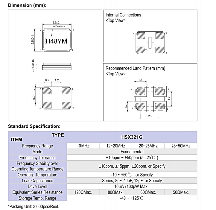 產品特征:5032尺寸,小型,薄型,較輕的SMD水晶振動子.高耐熱性,高精度,高信賴性.
