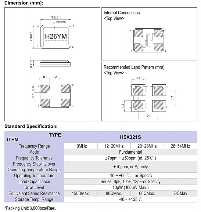 - HSA321S晶振,壓控溫補VC-TCXO晶振,加高HELE晶振