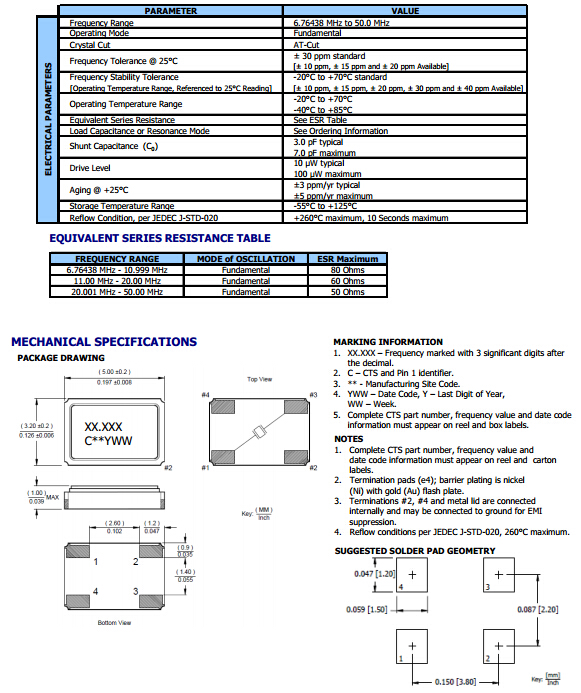 - 晶振外部尺寸:7.0x5.0x1.3mm