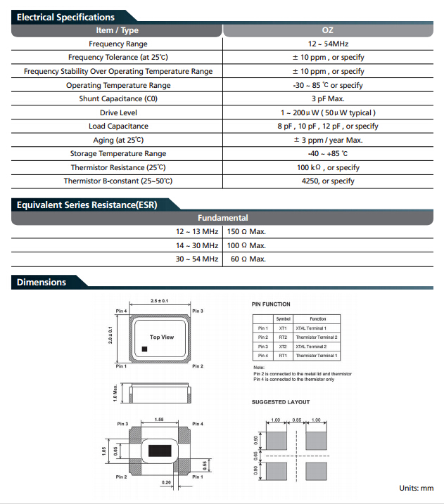 - 晶振外部尺寸:7.0x5.0x1.3mm