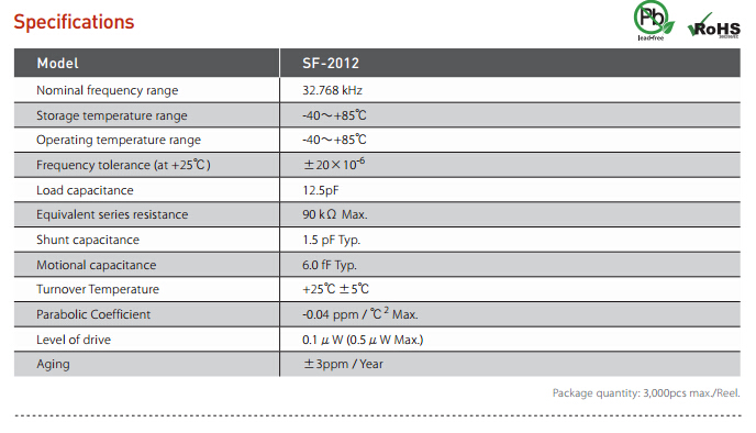 - 頻率:32.768KHz