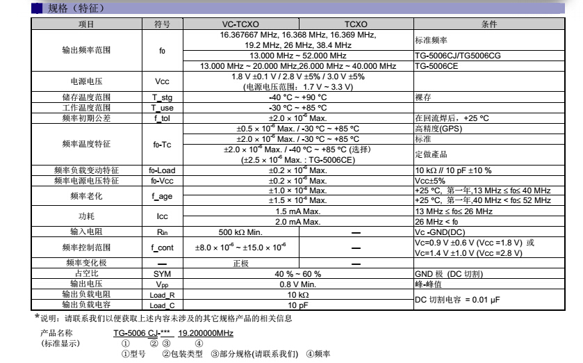 以下型號所列出的型號均為2520晶振,溫補TCXO晶振